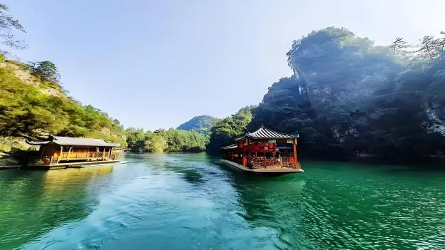 后乘车前往张家界后游览【宝峰湖】(门票已含,赠送环保车和游船):被称为“世界湖泊经典”,2011年被评为中国十大度假休闲湖泊之一,地处张家界武陵源风景名胜区的核心地带,宝峰湖风景区集山水于一体,融民俗风情于一身,尤以奇秀的高峡平湖绝景、“飞流直下三千尺”的宝峰飞瀑闻名中外游客,山歌不断,著名景点有仙女照镜,金蟾含月等景点,融合美好的山水自然风光。