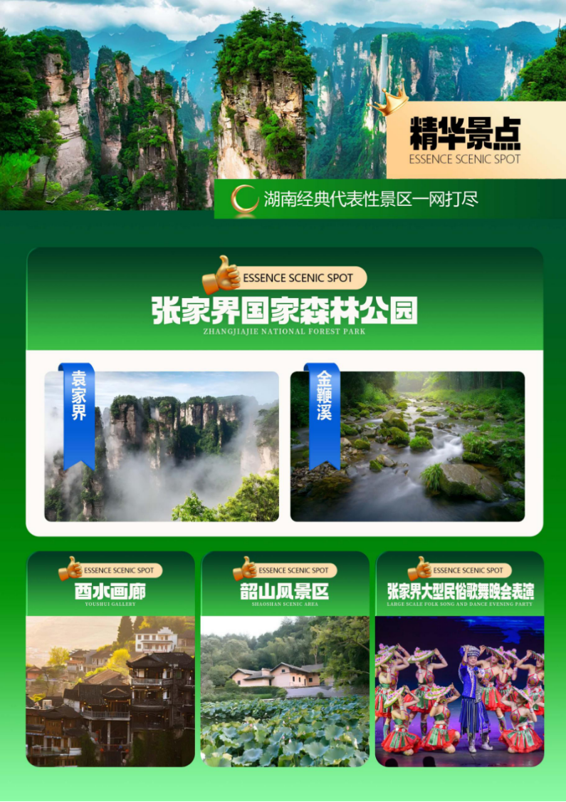 1、行程所列景点首道大门票;门票为旅行社打包协议价无任何优免退费;张家界国家森林公园;天门山、宝峰湖,晚会,湘西苗寨,土司府,韶山换乘车费用, 百龙电梯单程或者天子山单程索道或环保车单程,天门山穿山扶梯+鞋套,凤凰古城内旅游接驳车