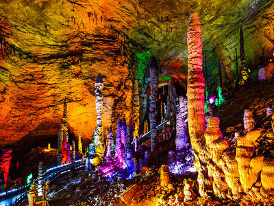 下午游玩游 5A景区,享有"世界溶洞奇观、世界溶洞全能冠军"之美誉的【黄龙洞】,它属典型的 喀斯特岩溶地貌, 洞中有洞,洞中有河;洞穴景观遍布其中, 无所不奇, 无奇不有, 仿佛一座神奇的地下 “魔宫”。洞中有大小等 100 多个景点, 其中投保 1 亿元的【定海神针】尤为显著。洞外“田园牧歌生态 广场”把人文融入自然, 利用索溪河、黄龙泉的自然水系资源, 打造了田园牧歌、风雨长廊、大鲵观测站、 水车石磨群、土家农舍、阡陌农田、小桥流水人家等一系列水利景观, 充分展示历史悠久的土家族农耕文 化和原住居民的生产生活习俗。
