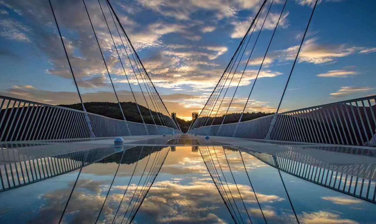 赴【世界第一玻璃桥·云天渡】(已含门票,赠送上桥鞋套 5 元/人)乘车抵达山顶后,感受全球 最长最高的玻璃桥,云天渡玻璃桥桥长 430 米,距谷底约 400 米,宽 6 米,全部采用 99 块透明玻璃铺设而成。 仰望蓝天白云,俯瞰溪流潺潺,似漫步云端,超脱尘世,忘却凡间。凭身体承受能力体验首座世界第一长的高山峡谷斜拉 玻璃桥奇观,它目前是世界最长、最高的全透明玻璃桥,并创下世界最高最长、首次使用新型复合材料建造桥梁等多项世界之最。
