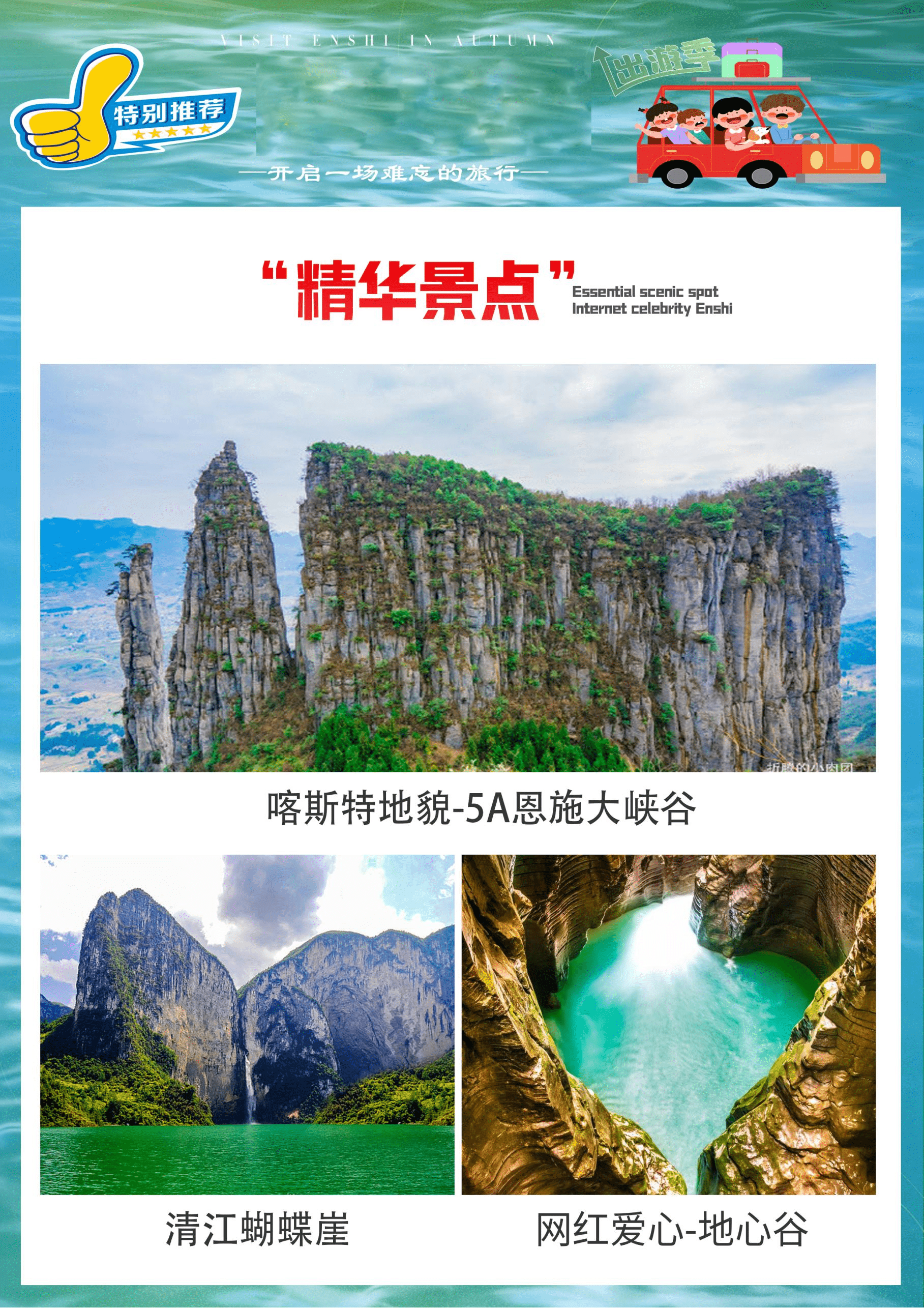 2、恩施精华景点一网打尽—恩施5A大峡谷七星寨/清江蝴蝶岩/建始地心谷/狮子关/土家女儿城