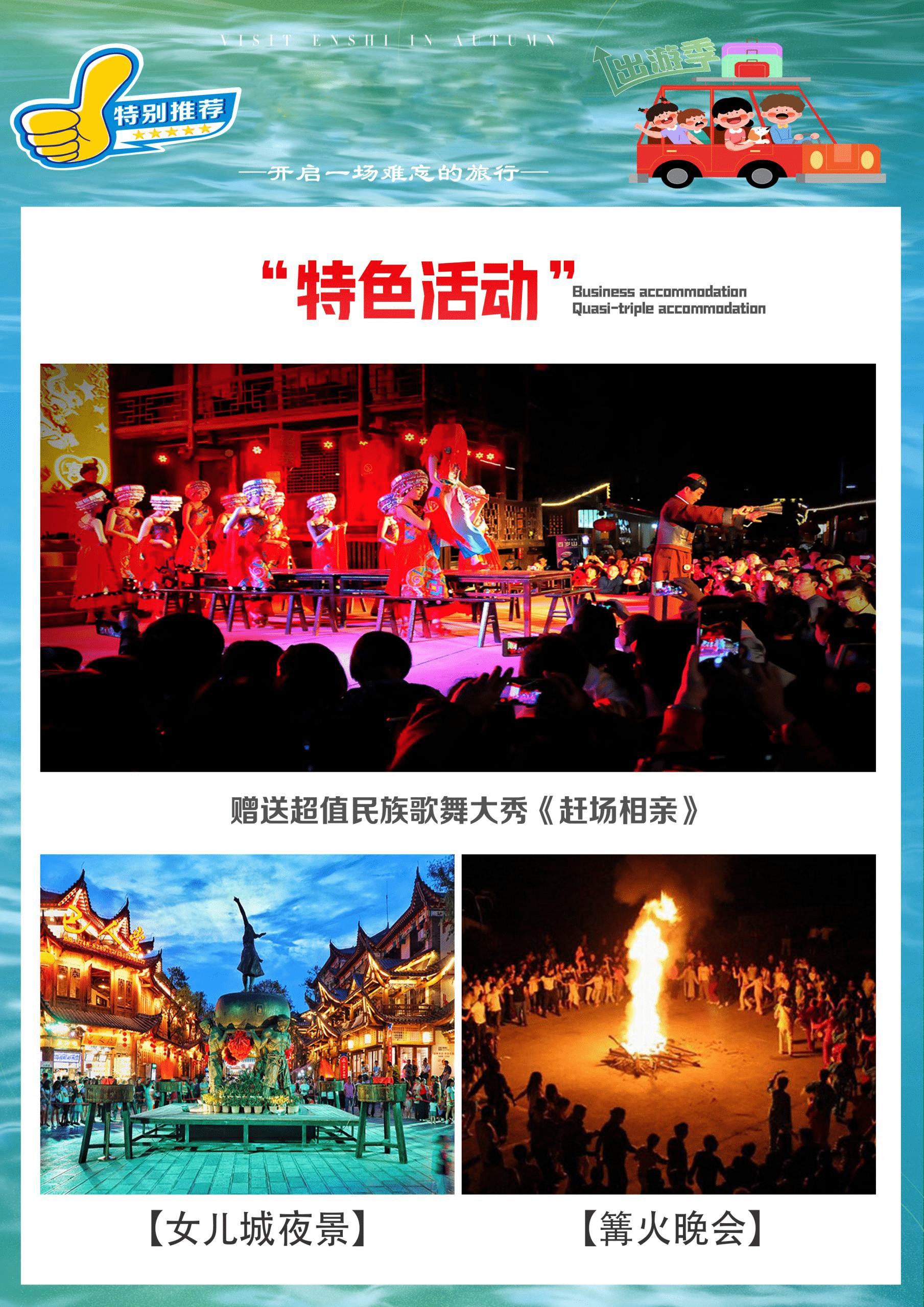 1、女儿城表演以景区实际安排为准,若遇下雨等情况无法表演,敬请谅解,无法退任何费用;自由活动时间,请保管好随身携带物品、尊重当地民俗面貌注意人自身安全;景区内土家特色物品自愿收藏,不属旅行社购物,请谨慎消费