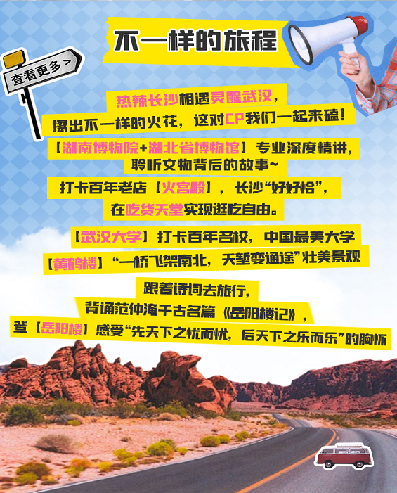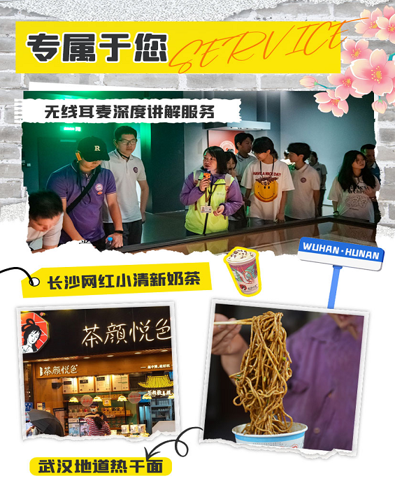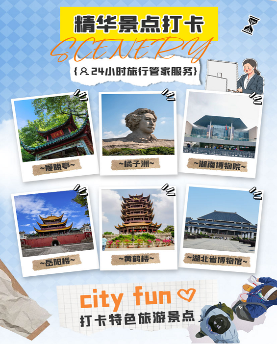 •途径: 四大历史文化街区、四大文旅热点、两大红色场景、三大热门商业、三大地铁线路,一程串联,多景同赏,一站式感受长沙的历史文化底蕴与现代都市魅力