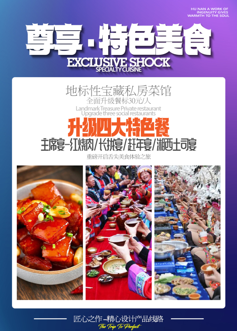 3、餐费:5 早 5 正餐中含3个特色餐 餐标 30/人,安排九菜一汤,十人一桌。正餐不用不退费亦不作等价交换!酒店房费包含早餐,儿童不占床不含早