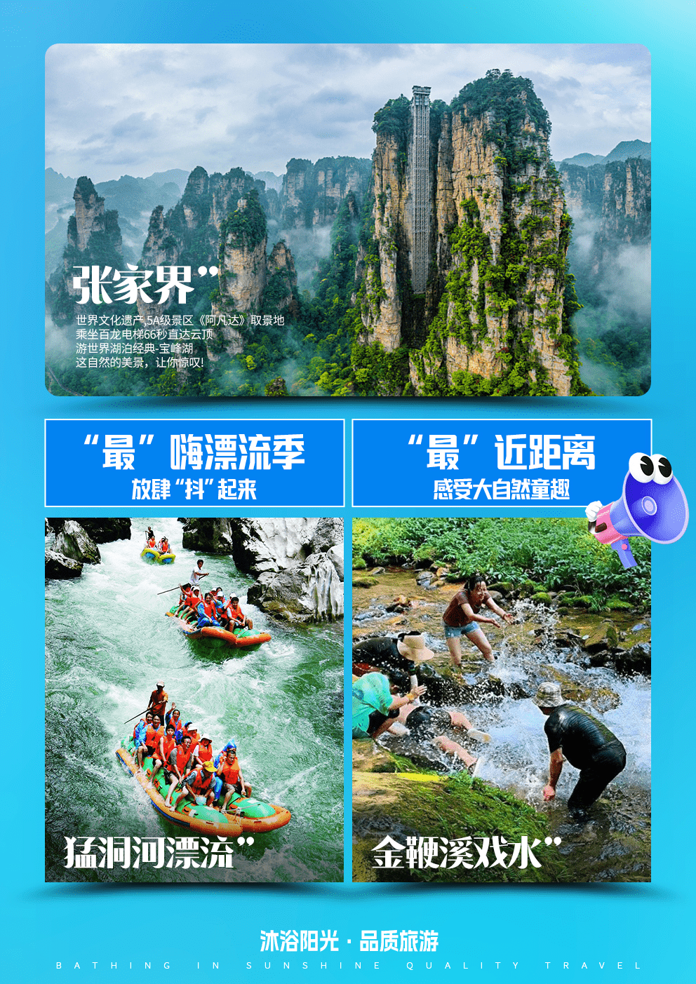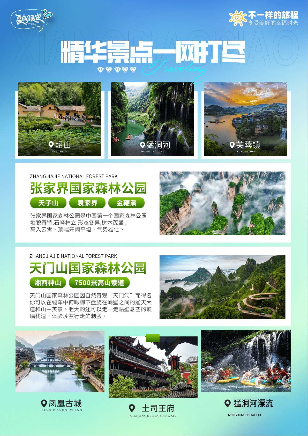 D3 | 凤凰古城Ø猛洞河漂流 | √ | √ | √ | 张家界 |