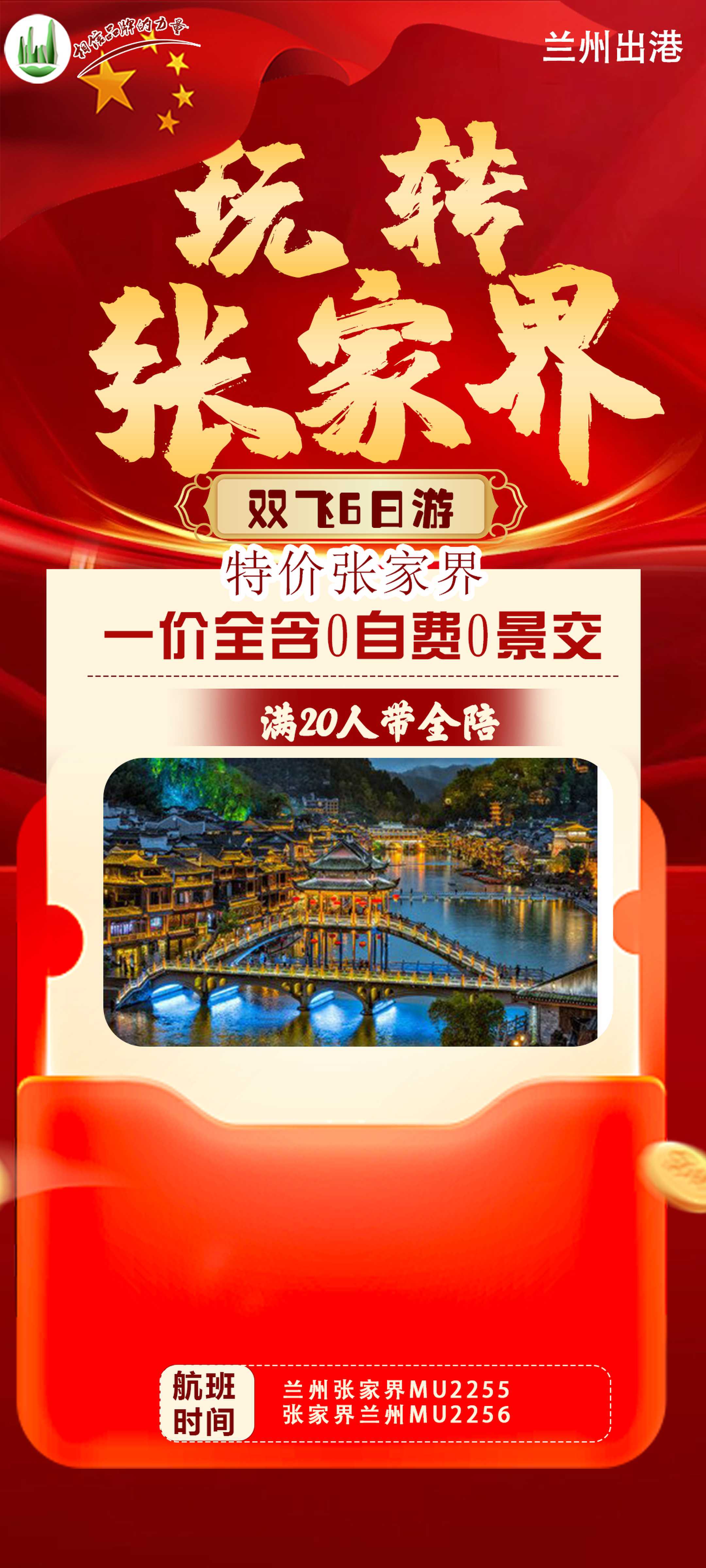 去程: MU2255兰州-张家界 8:15-10:20