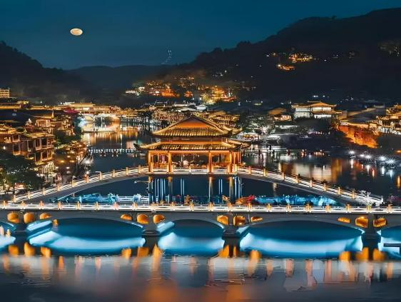 后乘车前往【凤凰古城】(不含古城内需另行付费的小景点,自由观光):如果白天的凤凰是一位纯朴、美丽的苗家女子,那么夜间的凤凰就是一个多情、大方的湘西姑娘。站在沱江岸边, 仿佛置身于灯的世界,歌的海洋。在霓虹灯下感受古城的温馨与浪漫,一场美丽的邂逅正等着您。 浏览沈从文笔下能读到、在黄永玉的画中能看到、早餐在宋祖英歌里能听到,被新西兰著名作家路易艾黎称赞为中国最美丽的小城【凤凰古城】(接驳车已含,凤凰九景门票未含)游古城风雨虹桥、沱江跳岩、东门城楼下的石板街、古城墙、明清一条街、沿沱江两岸漫步,欣赏沙湾吊角楼,细细品味古城久远的历史和尘封心底的记忆;古香古色、极富浓郁苗家民族风韵的吊脚楼与两岸,细脚伶仃的木柱立于河中,拖起古城中一段美丽的往事。晚上浏览凤凰夜景、漫步沱江边石板街观赏两岸红灯笼高挂的吊脚楼群,古城墙,夺翠楼 ,万名塔等、逛少数民族工艺品一条街:苗家银饰,苗家蜡染等,现场观看凤凰土特产制作——姜糖工艺。