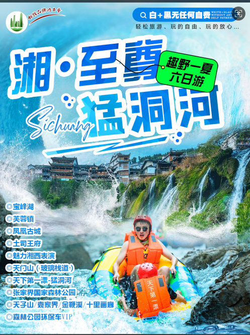 若因天气或其他原因导致无法完成漂流项目,则将漂流项目更换为“黄龙洞”——费用不退不补。 3岁以下, 65岁以上不建议漂流,可以现退100元/人费用