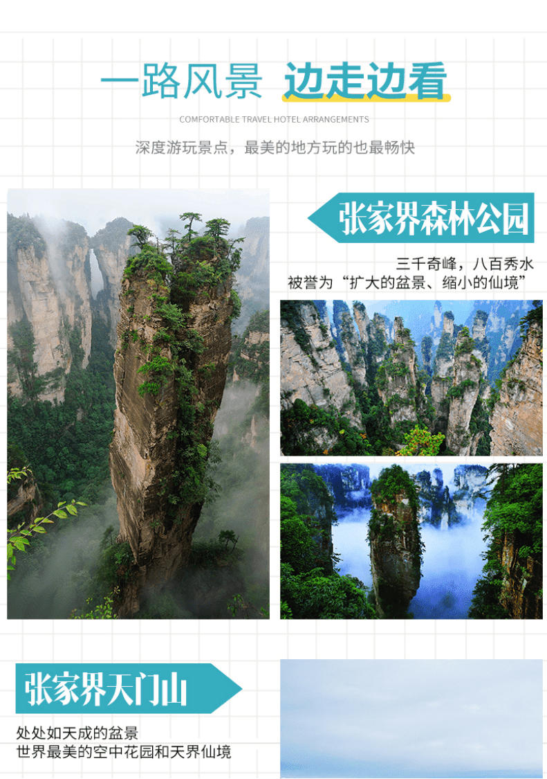 1、门票:张家界国家森林公园、天门山国家森林公园;(赠送:百龙天梯单程、天门山扶梯、鞋套,韶山环保车、凤凰接驳车、湘西苗寨、张家界魅力湘西表演/千古情、猛洞河漂流,所有景点无优无免无退费)