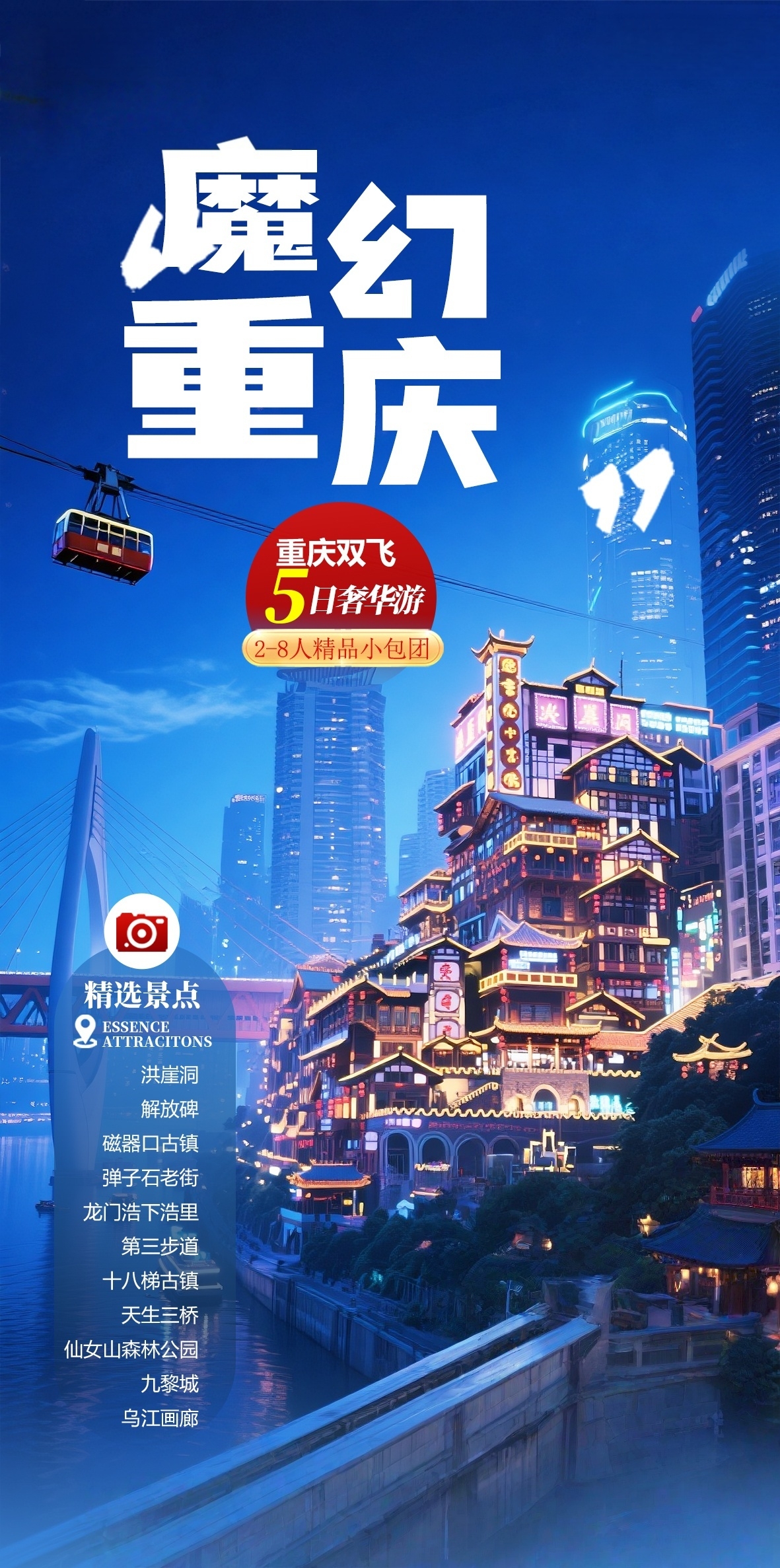D4 | 鹅岭二厂Ø弹子石老街Ø龙门浩·下浩里Ø第三步道Ø十八梯古镇Ø解放碑Ø洪崖洞Ø磁器口 | √ | × | × | 重庆 |