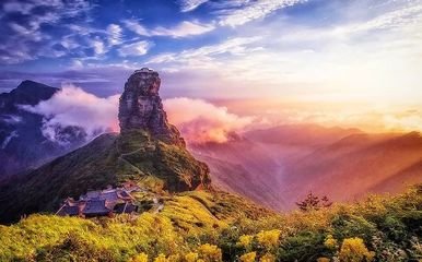 早餐后乘车前往游览佛教名山——【梵净山景区】,(景区观光车48元/人,保险10元/人,梵净山东门往返索道140元/人,费用需自理)。游览完毕乘车前往酒店入住。新晋世界自然遗产地,登国家自然保护区,探访联合国“人与生物圈”保护网,穿越原始森林,观梵净山标志性景物——【蘑菇石】,自由拍照留恋。可根据自身情况选择攀登【红云金顶】,海拔2336米,晨间红云瑞气常饶四周,因此而得名。山峰拔地而起,垂直高差达百米,上半部分一分为二,由天桥链接,两遍各建一庙,一边供奉释迦佛,一边供奉弥勒佛。由此印证现代佛(释迦牟尼)向未来佛(弥勒佛)的交替。攀登【老金顶】,巍峨起伏的群山,茫茫无际的林莽,似乎就微缩成眼前一面波光荡漾的碧海,就连气势雄伟的新金顶,此时也不过是脚下一座石磴而已。梵净山犹如巨大的天然氧吧,在这里呼吸沁人心肺的新鲜空气,远离城市的喧嚣,体验宁静致远的感觉。