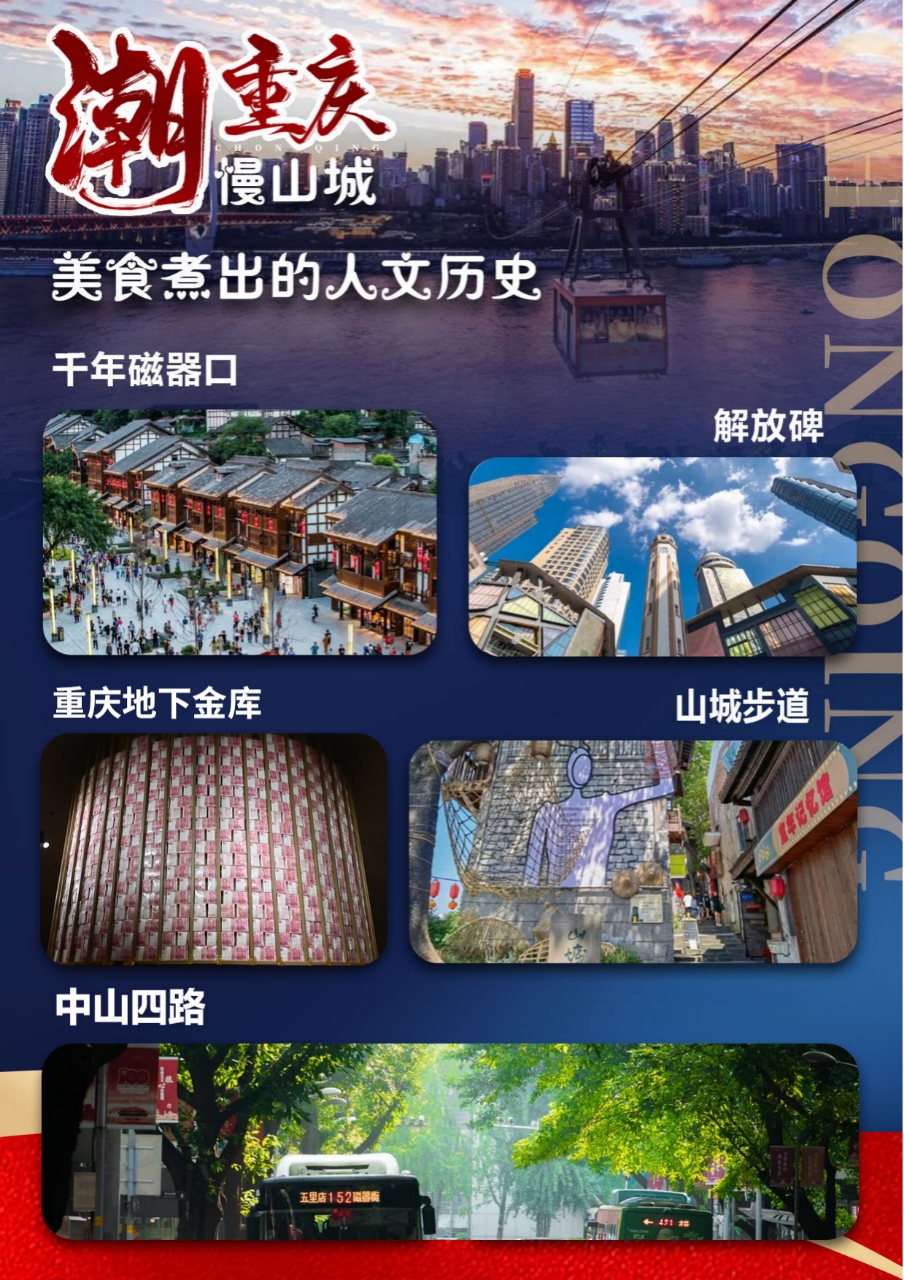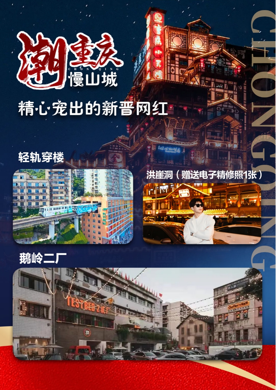 自由达人:一觉到自然醒,可自行边吃边浪,打卡重庆那些去了就不想走的地方,根据回程航班/车次时间送站,结束愉快旅程!