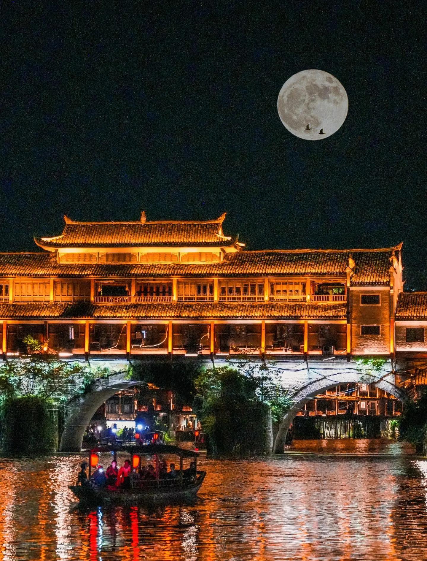 晚上欣赏【AAAAA凤凰古城夜景】(古城内换乘车28/人已含):欣赏沱江两岸醉人夜色——带您穿越千年凤凰的必游景点!【七重灯光秀】--欣赏中国首个以苗族文化为故事线的夜游大作。本项目总投资5000多万,由近300名文旅专家、艺术家、科学家、工程师共同联手打造,以呈现苗族文化为核心,将国画、动漫、真人实拍、电影视听、实景搭建、夜游装置、光影设备等多种表现形式进行巧妙融合,一场光影科技与苗族文化的完美融合(赠送项目不看不退,也不做等价交换请谅解)。在霓虹灯下感受古城的温馨与浪漫,一场美丽的邂逅正等着您......。