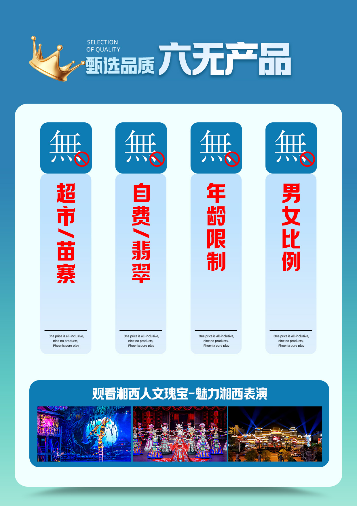 六无产品▷无超市▷无苗寨▷无翡翠▷无自费▷无年龄限制▷无男女比例.