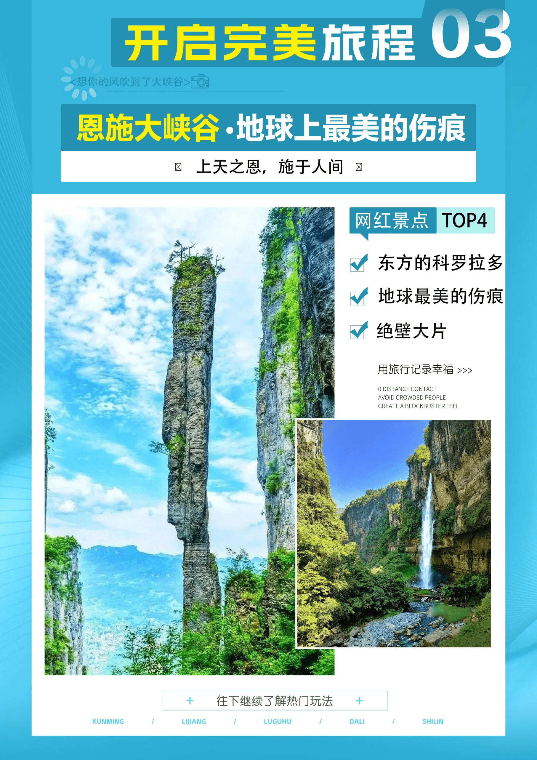 2、恩施精华景点—大峡谷全景、狮子关、彭家寨、屏山大峡谷、仙山贡水