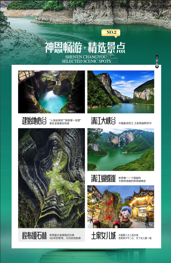 自费套餐:499元/人(包含恩施大峡谷景交+地面缆车+清江蝴蝶岩船票+地心谷景交+狮子关景交+车导综合服务费)