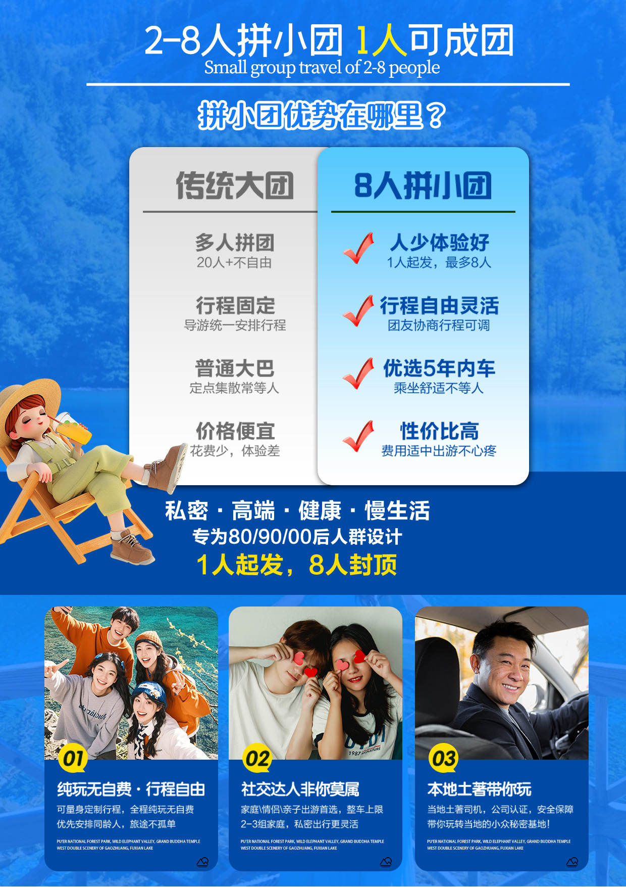 2-8人纯玩小团,全程0购物0车销0强销