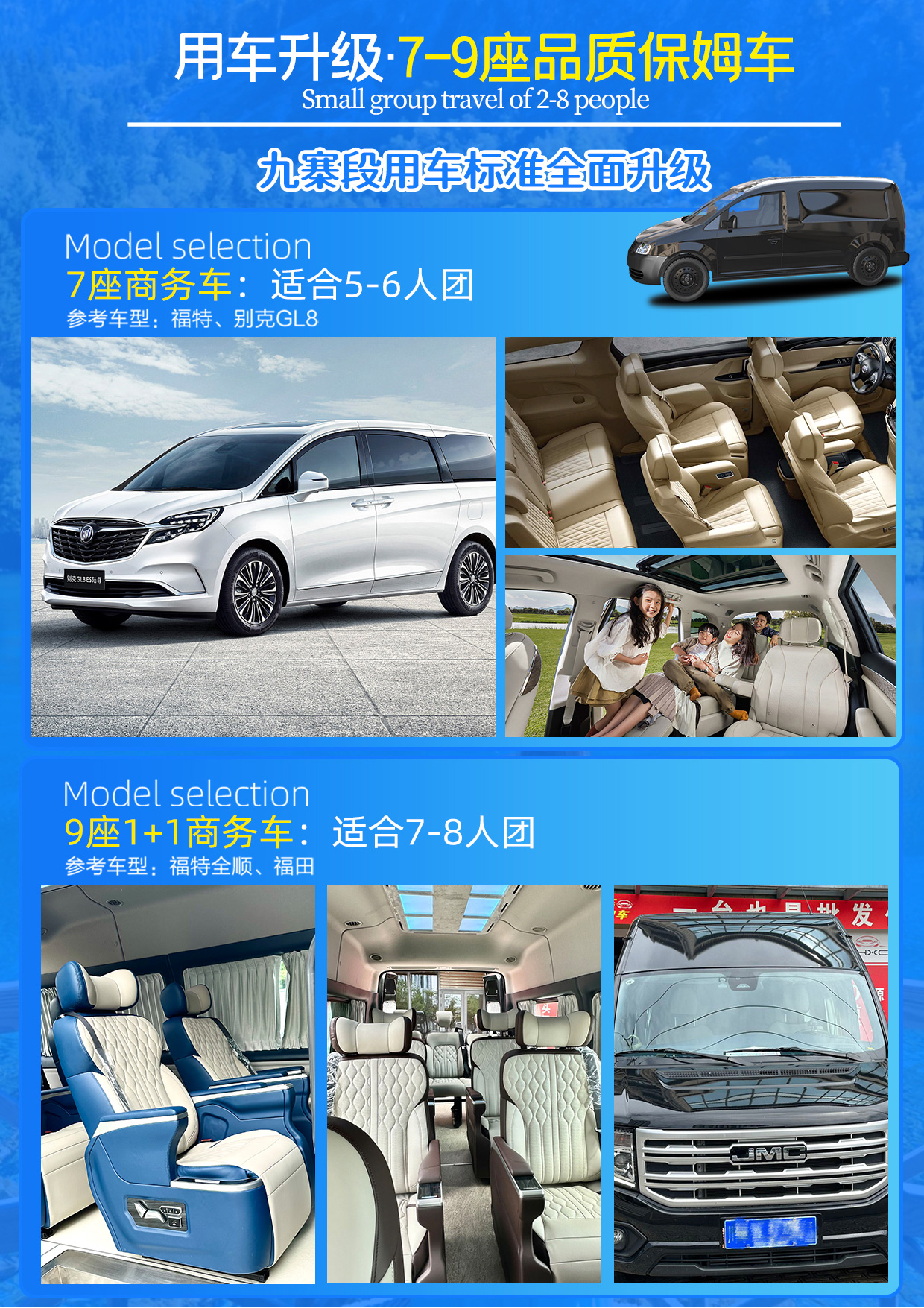 升级7-9座品质保姆车,人少体验好,出行更自在