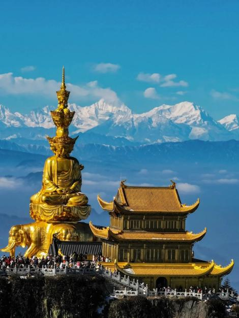 成都三环内专车酒店接早出发,前往【峨眉山金顶景区】(金顶门票已含,不含观光车费90/人;不含上行索道65/人,下行索道55/人)金顶最高处,有一座稀有珍品,称作“金顶铜殿”,殿高8米,宽4.8米,深4.3米,上为重檐雕甍,环以绣棕锁窗,通体皆用铜件焊成。屋顶檐瓦馏金,在阳光映照之下,金光闪闪,迢耀百里,固名金顶。金顶过去有大小寺庙及寮舍等共计548间,可容千人同时进食,是全山最宏大的一处建筑群。金顶华藏寺位山势而建,中轴线上由低到高分布着三重殿堂,分别为弥勒殿、大雄宝殿和普贤殿。在金顶卧云底的东面,有一悬空600多米的断崖,雄险奇伟,为全山第一巨岩,名舍身崖。又因此处可以看“佛光”“佛灯”,所以又叫睹光台。本日不含午/晚餐,推荐自行前往品尝当地特色美食:翘脚牛肉、峨眉山豆腐脑、荞凉粉、钵钵鸡等。游览完毕前往酒店入住。