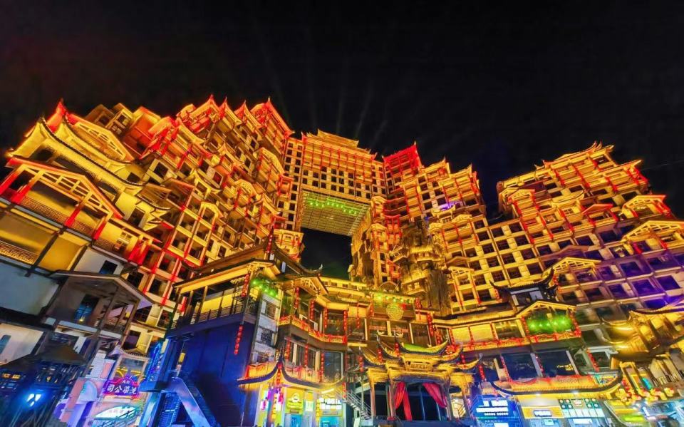 后【夜游 72 奇楼】网红打卡点“土家族的布达拉宫”夜游门票(未含),特别观看《这才是湘西!》360 度沉浸式街区演艺秀。(入园时间:行程第一天抵达张家界下午 17:30分-22:30 分之间,其他时间不安排入园)