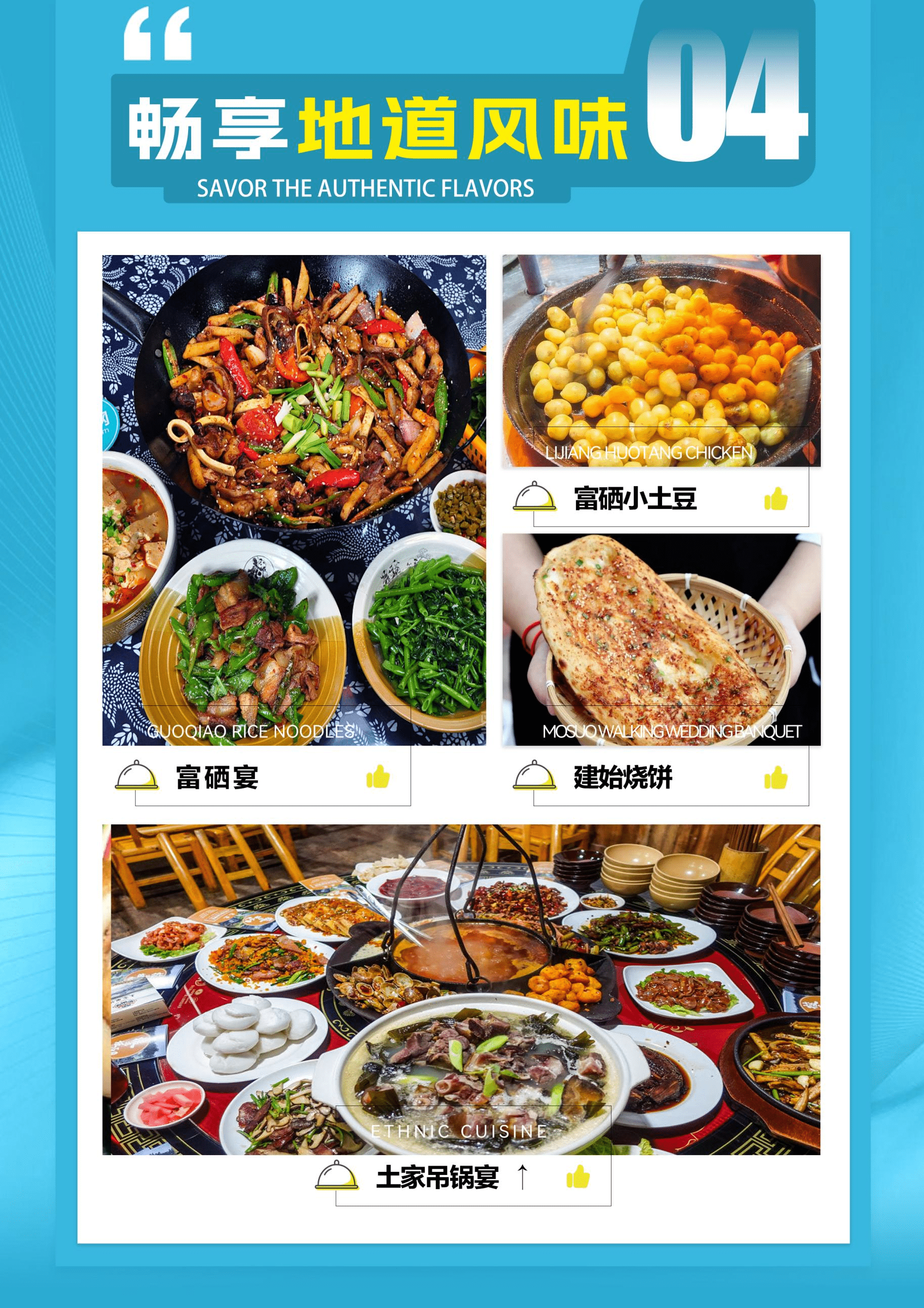 3、品尝恩施地道美食—吊锅宴、建始烧饼、富硒宴富硒小土豆