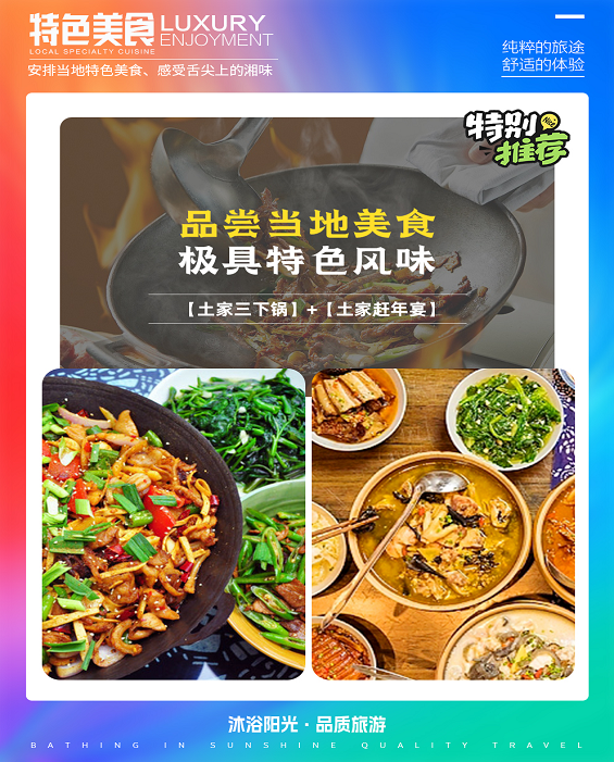 用餐:5早2正餐,正餐50元/餐/人,赠土家三下锅