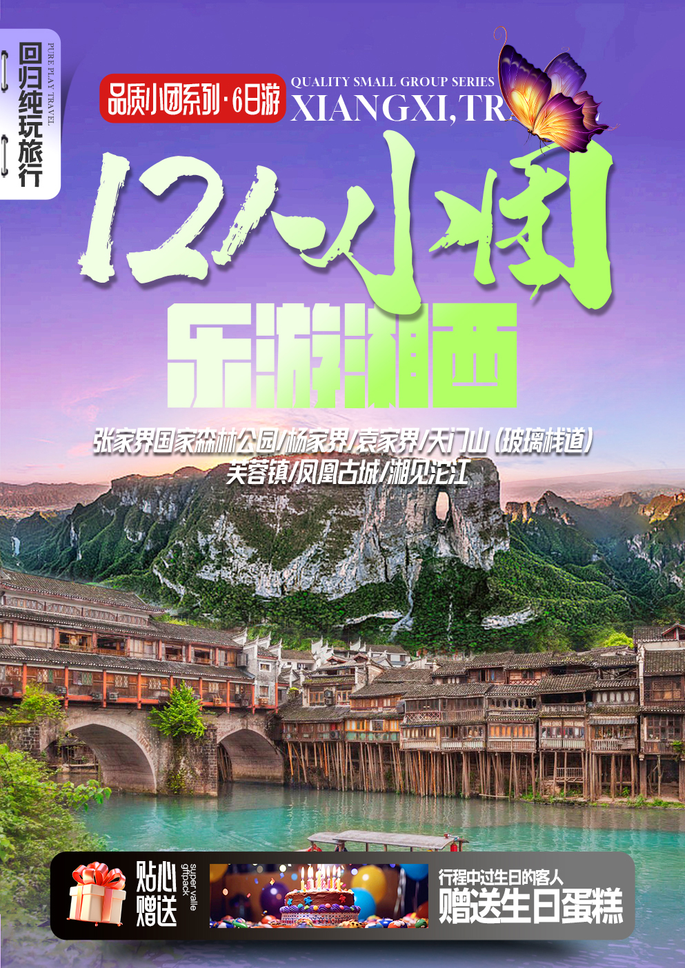 温馨提示:1、正常情况下张家界安排送17:00以后的返程交通,节假日建议安排次日交通;2、凤凰古城为敞开式商业老街,本地老百姓的姜糖银器蜡染店铺、外地文艺青年的特色商铺较多,凤凰导游义务介绍,旅游者购物行为选择,旅行社不接受凤凰区域旅游者在小商铺购物方面的投诉及退换货的要求。建议有购物需求的旅游者提前了解相关信息,尽量选择资质齐全的购物商城或政府授牌的大型商铺。如有购买请保留好小票及售后联系方式,日后如有售后需求以便联系