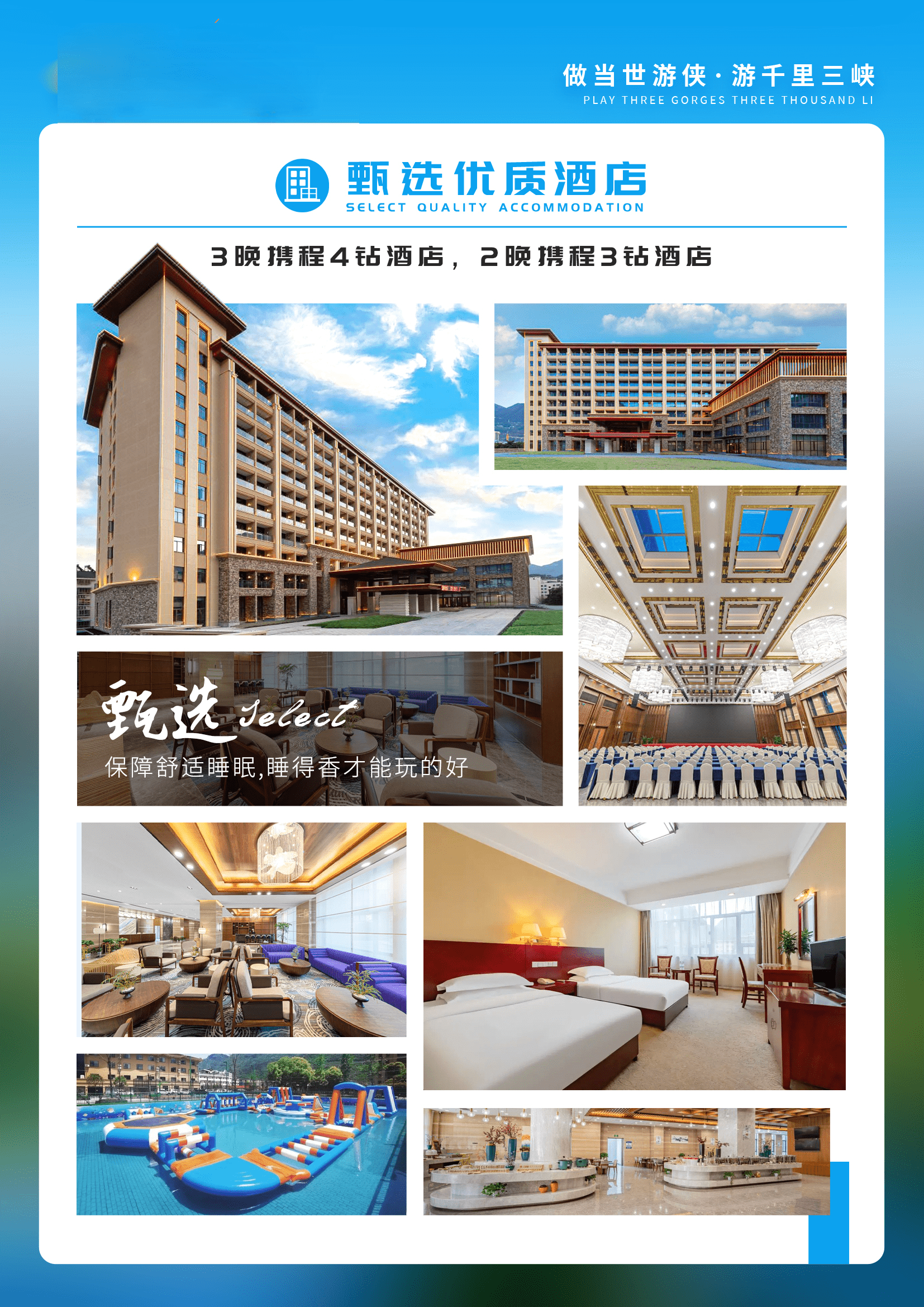 4、住宿:3晚携程四钻酒店+2晚携程三钻酒店,双人标间,不提供单间