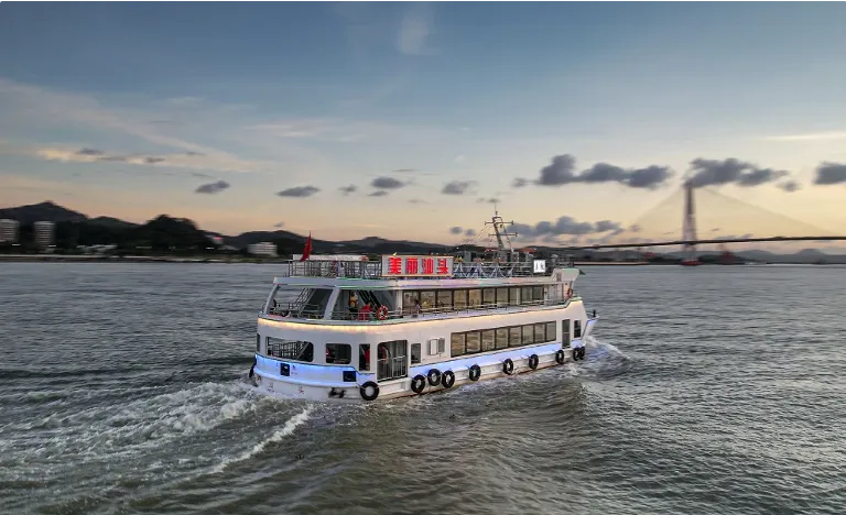 体验【一江两岸老汕头摆渡船】欣赏两岸美景欣赏落日余晖映晚霞、一抹夕阳美如画。后赴揭阳欣赏耗时三年精心打造的两千万巨作【大潮归来英歌舞】大型表演。由20多名艺术家联合创作完成。创作团队引入多项先进舞台艺术与舞美工程,搭配美轮美奂的声光电效果,打造全息梦幻舞台。在50多名舞者的激情演绎下,为观众带来一场身临其境、感人至深的视听盛宴。《大潮归来》不仅是中国第一部以英歌为题材的舞台剧,也是潮汕首部剧院式全息幻境舞台巨作。它将带您回溯热血岁月,见证潮汕大地的灵魂回响。