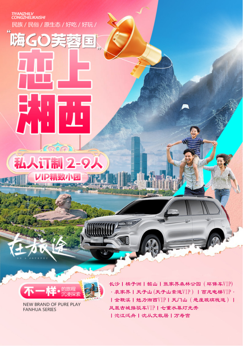D4 | 天门山国家森林公园VIP(玻璃栈道)Ø 芙蓉镇Ø凤凰(七重水幕灯光秀) | √ | × | × | 凤凰 | |