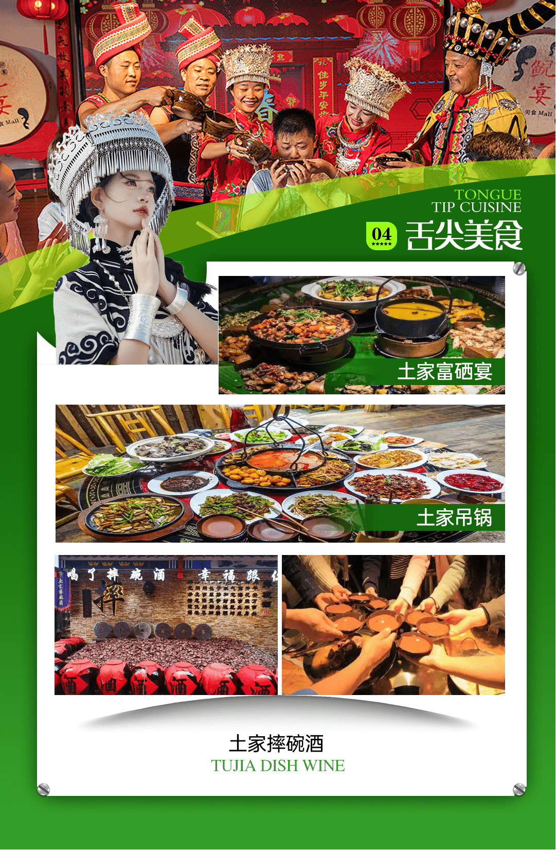 女儿城表演以景区实际安排为准,若遇下雨等情况无法表演,敬请谅解,无法退任何费用;自由活动时间,请保管好随身携带物品、尊重当地民俗面貌注意人自身安全;景区内土家特色物品自愿收藏,不属旅行社购物,请谨慎消费)