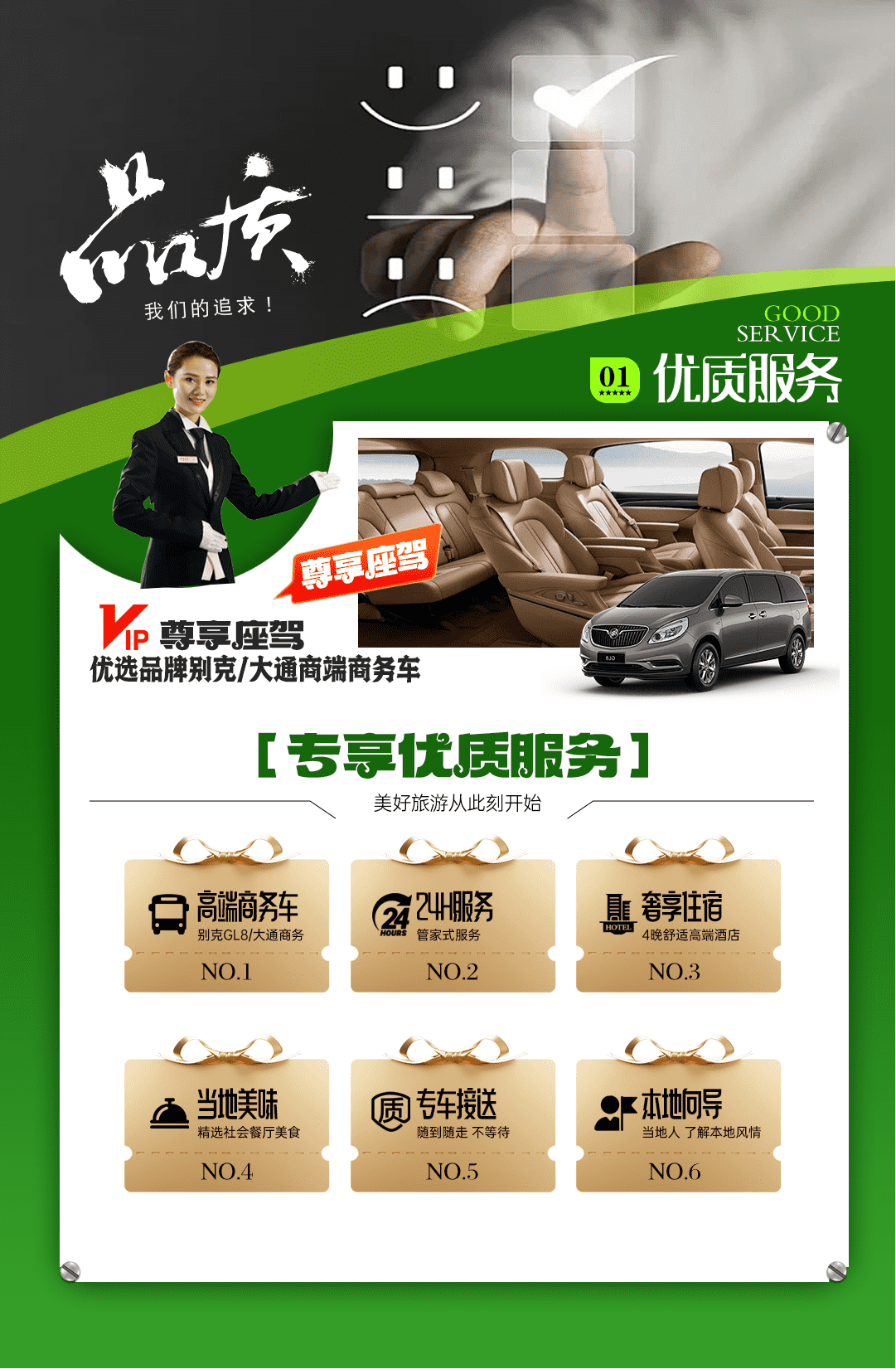 4、交通:优选别克/大通或同级别商务车,保证每人一正座;