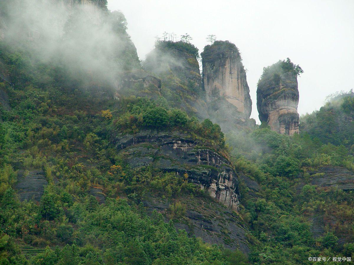 随后游览:【云窝】云窝以铁象岩为界,分上、下云窝。云窝背岩临水,地处武夷山精华地带,为武夷山首胜,这里历来是古代文人墨客、名宦隐潜居养心之所,此处因常有云窝飘渺而得名,是古代道人方士隐居潜读的地方。随后经茶洞,看武夷第一壁-【晒布岩】。