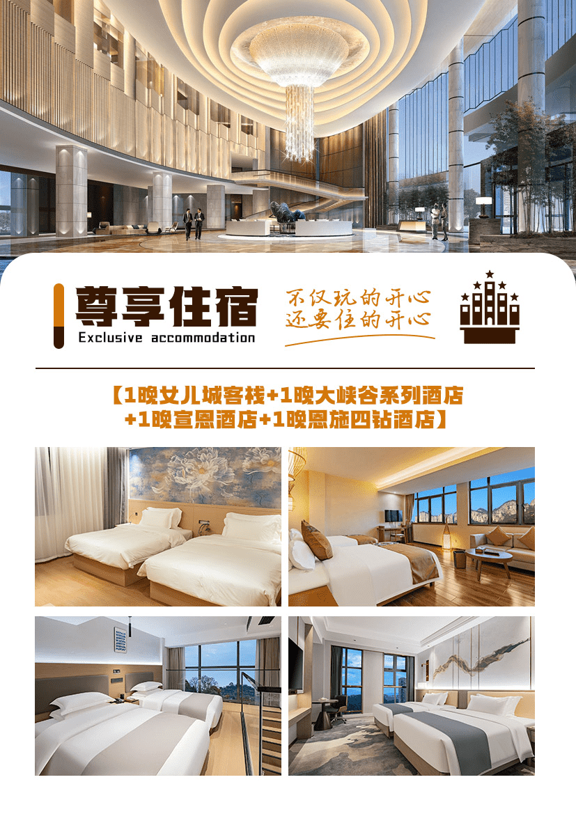 1晚女儿城客栈+1晚大峡谷系列酒店+1晚宣恩酒店+1晚恩施四钻酒店
