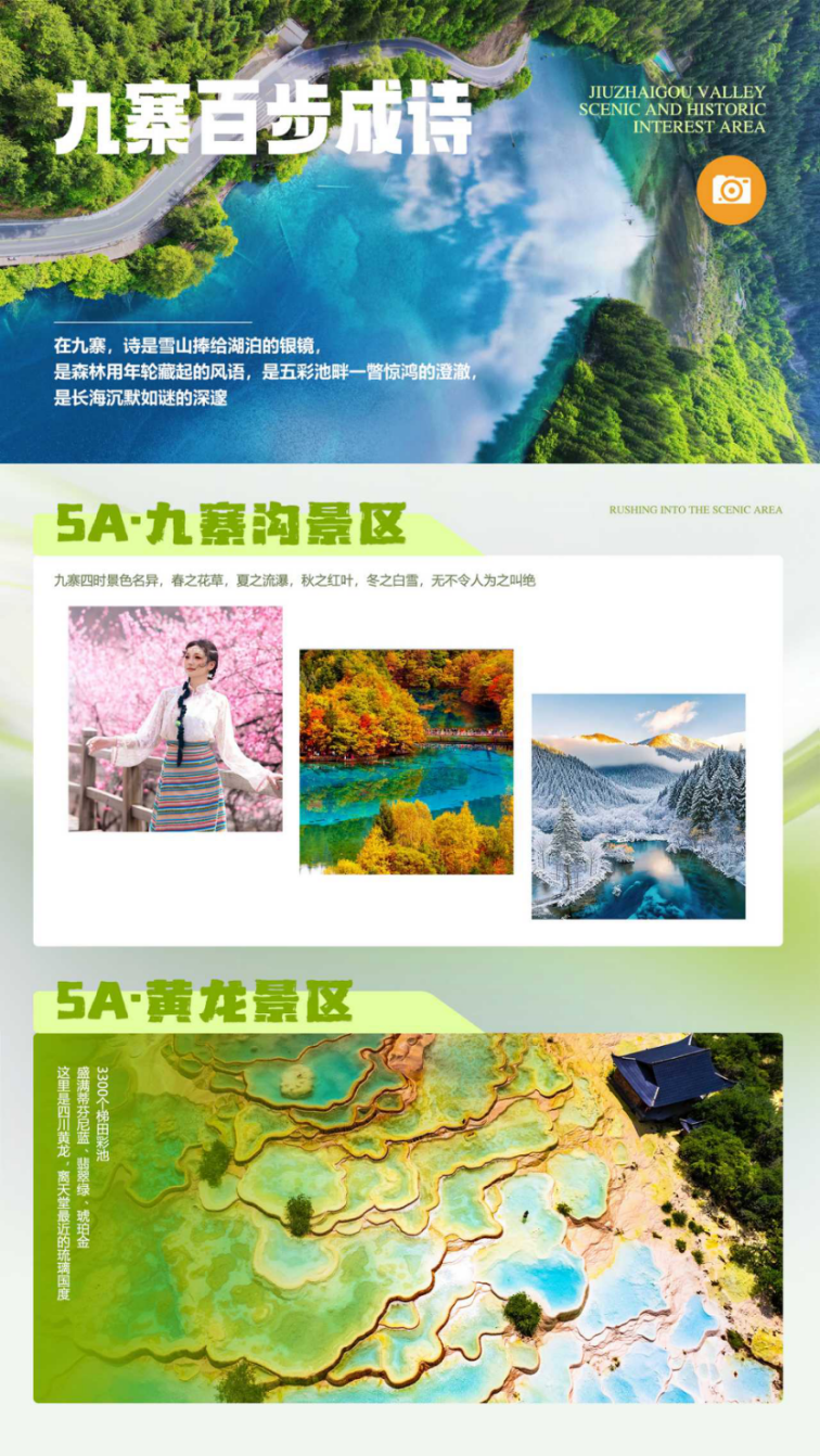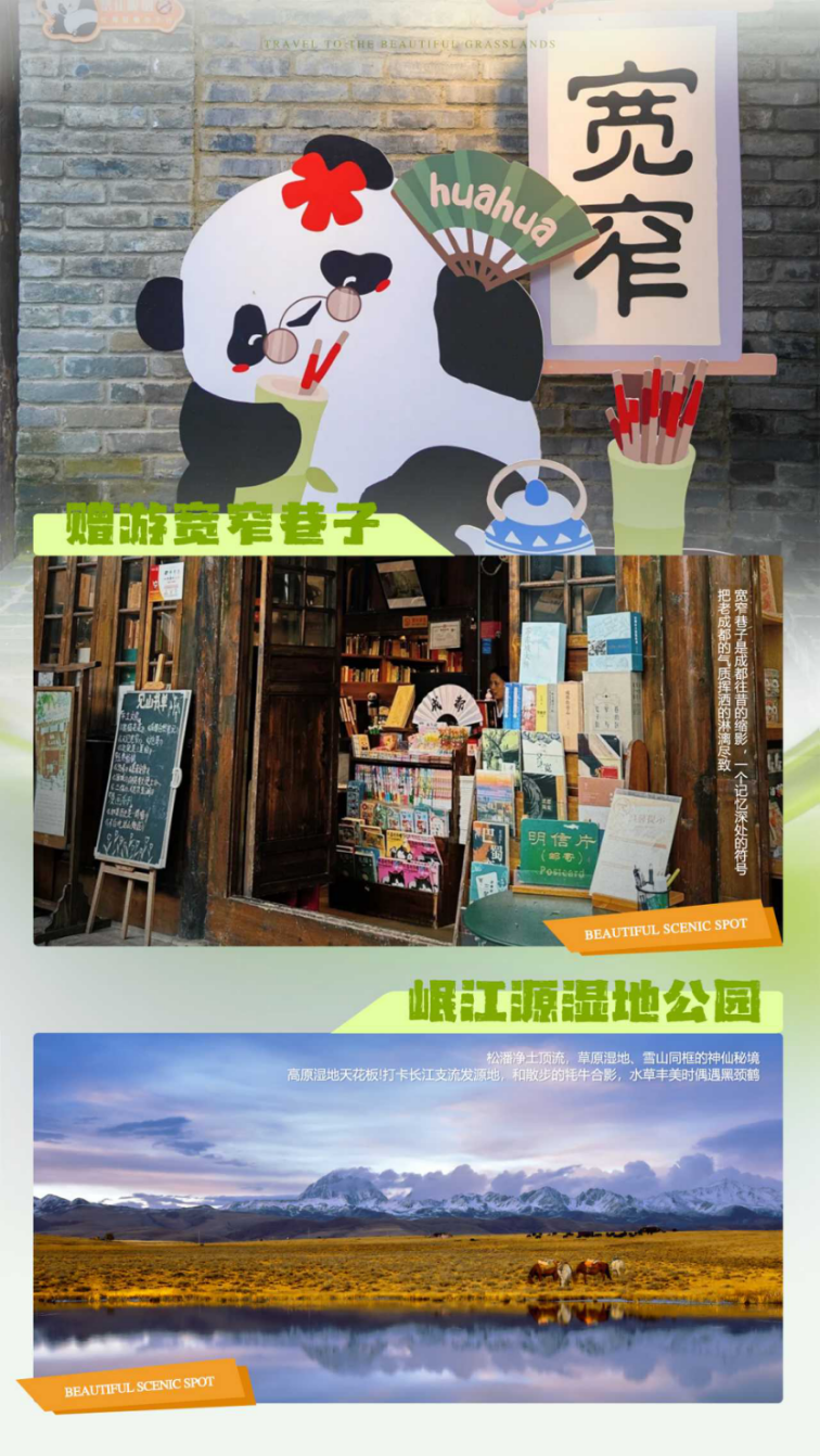 【精华景点】:九寨沟、黄龙、宽窄巷子+周边一日游
