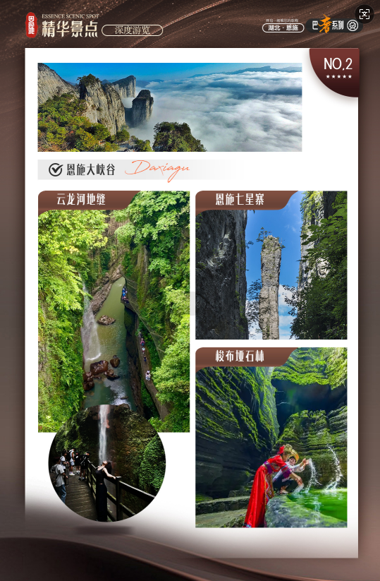 D4 | 恩施大峡谷七星寨Ø土家女儿城 | √ | √ | × | 恩施 |