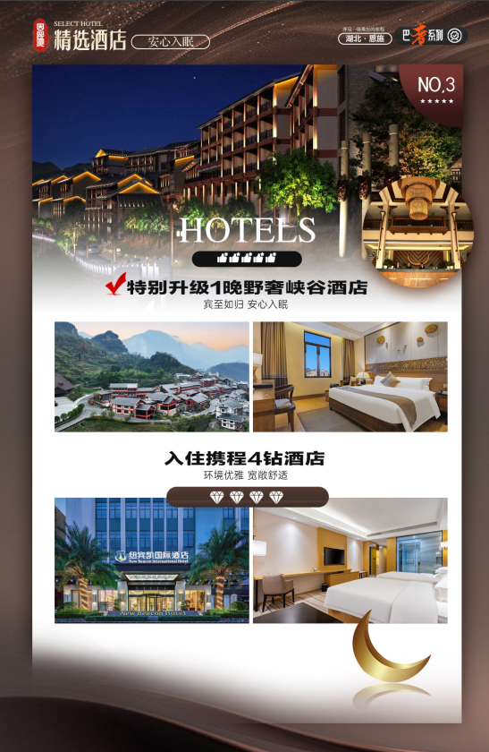 1晚女儿城客栈+1晚大峡谷系列酒店+1晚宣恩酒店+1晚恩施4钻酒店