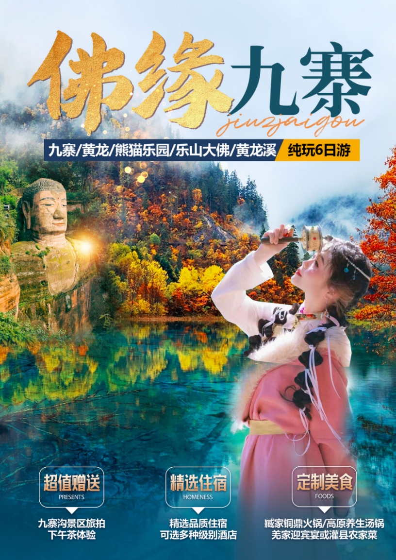 [美景体验]:童话世界九寨沟、瑶池仙境黄龙、萌宠熊猫乐园、天府名镇黄龙溪古镇、世界最高座佛—乐山大佛