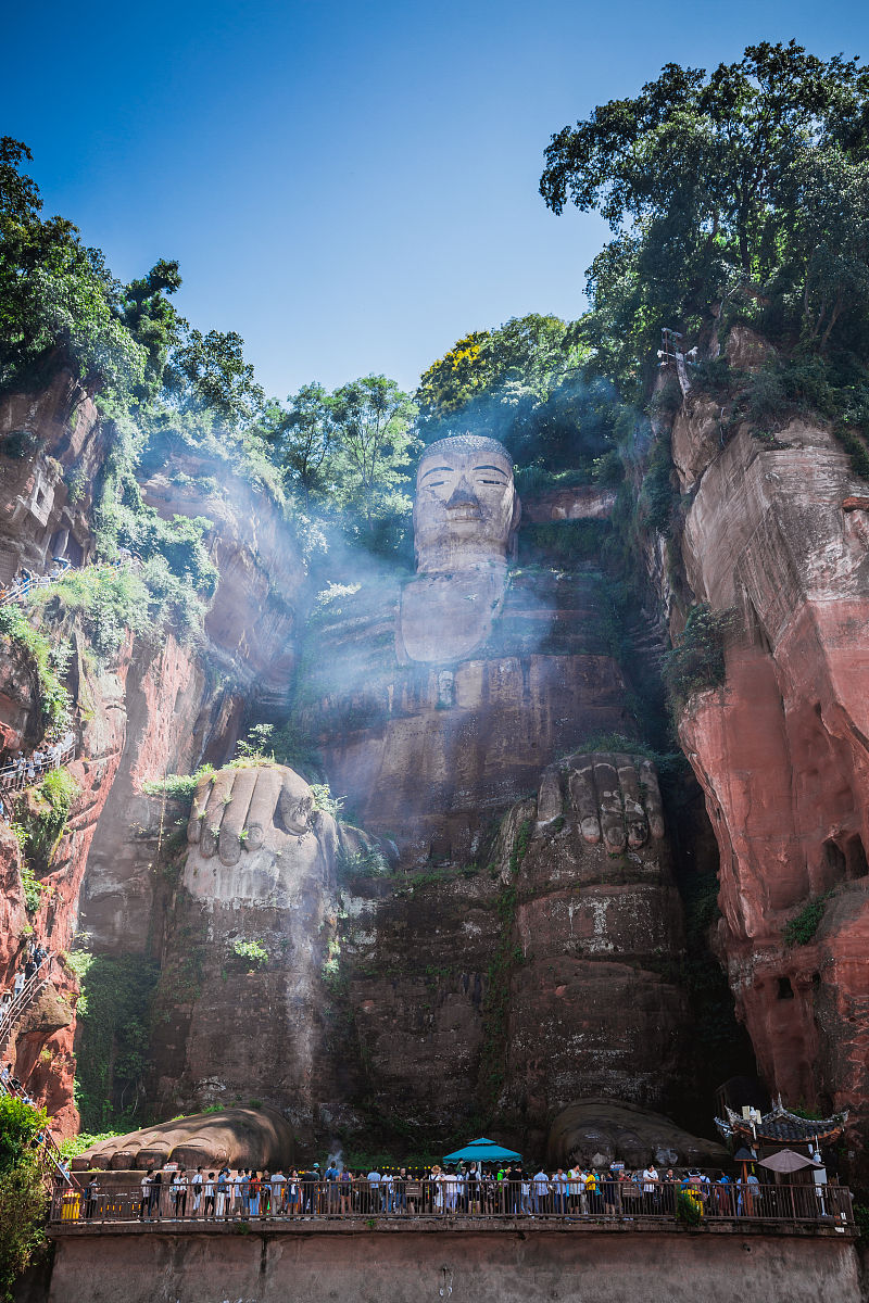 07:30 成都市区统一集合点出发,经成雅乐高速抵乐山(全程128公里,车 程大约2小时左右,沿途经过双流,新津,彭山,眉山,夹江到达乐山,可 在车上饱揽川西平原的怡人风光10:00 抵达游览参观世界第一大佛——【乐山大佛】(登山),大佛开凿于唐玄宗开元初年,历时 90 年才告完成,佛像高 71米,比号称世界最大的阿富汗米昂大佛(高 53 米)高出 18 米,是名副其实的世界之最,素有“佛是一座山,山是一座佛”之称。并游览禅缘,凌云寺,大雄宝殿,下九曲栈道、观三江汇流、灵宝塔。