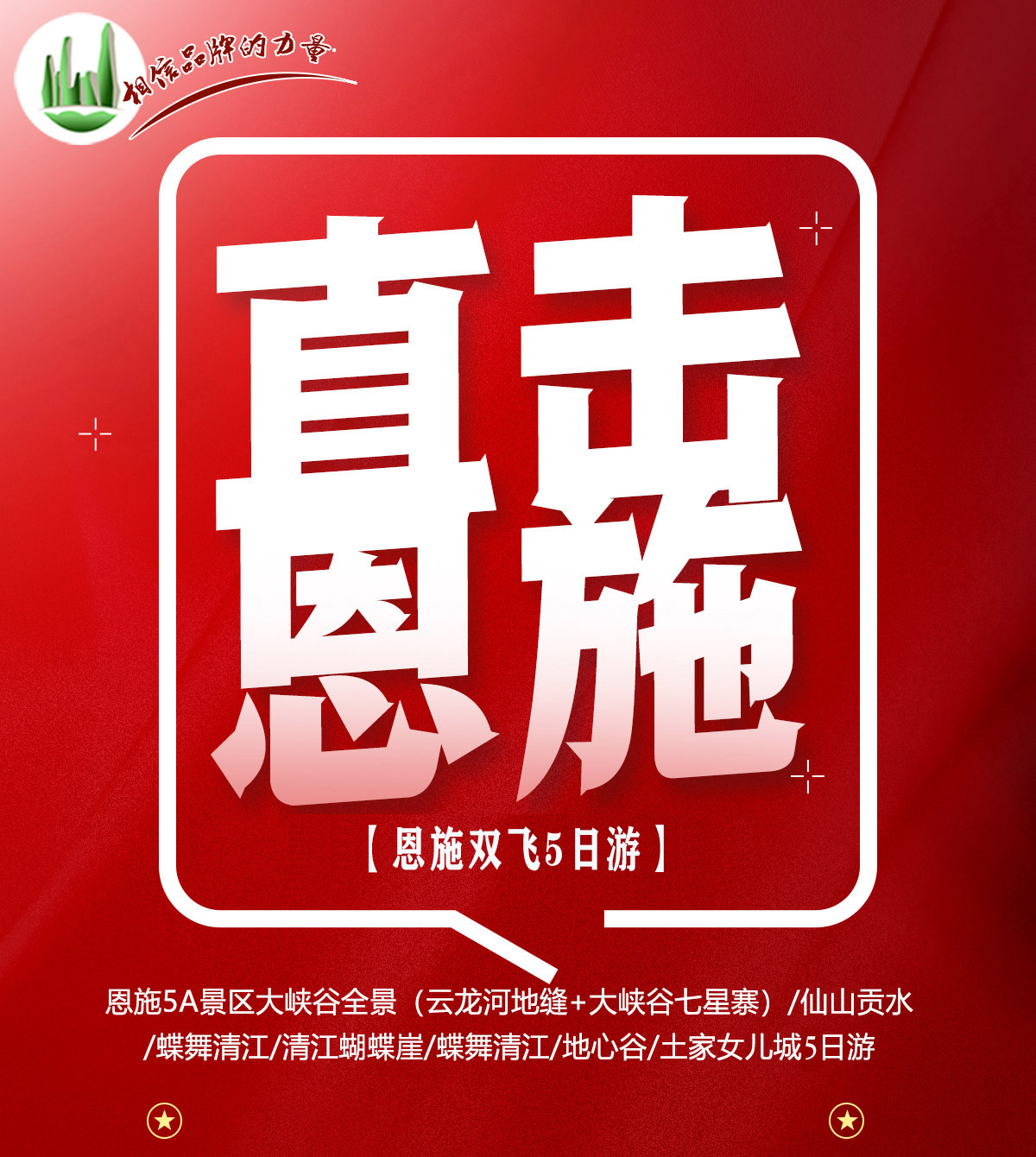 3、恩施5A景区大峡谷全景/仙山贡水/蝶舞清江/清江蝴蝶崖/地心谷/土家女儿城5日游