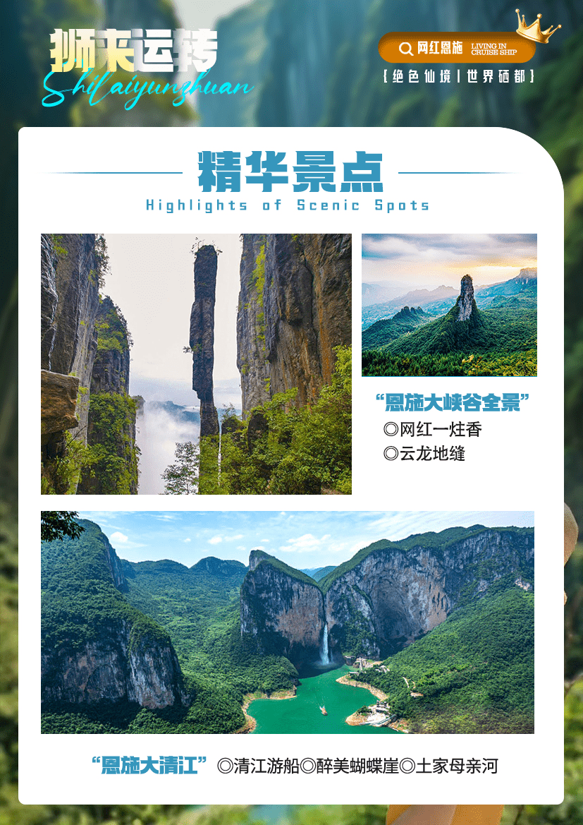 🌄 精华全览:恩施5A景区大峡谷七星寨 /云龙河地缝/建始地心谷/清江蝴蝶岩景区 /蝶舞清江.云顶/土家女儿城 /狮子关-伍家台一日游