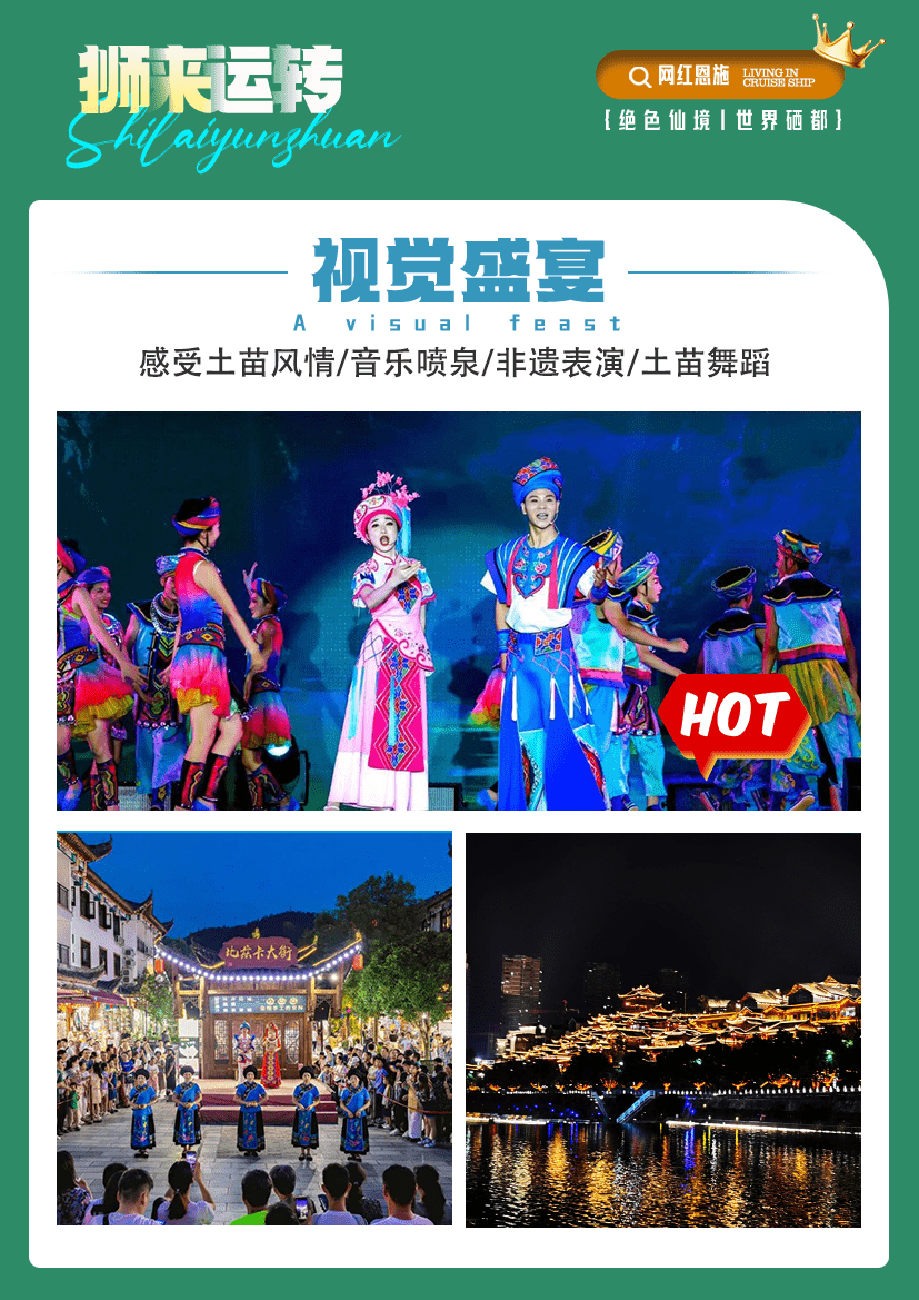 (温馨提示:女儿城表演以景区实际安排为准,若遇下雨等情况无法表演,敬请谅解,无法退任何费用;自由活动时间,请保管好随身携带物品、尊重当地民俗面貌注意人自身安全;景区内土家特色物品自愿收藏,不属旅行社购物,请谨慎消费)