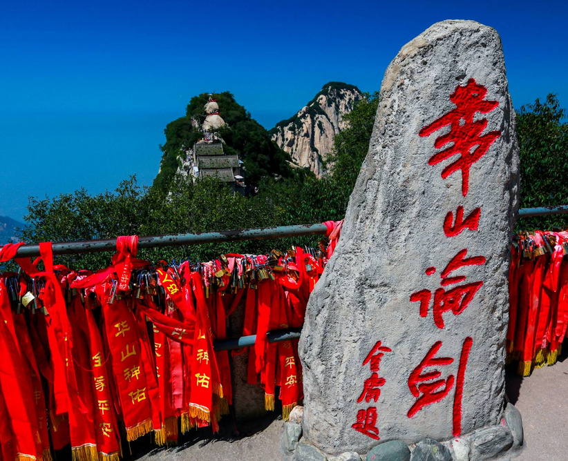 早餐后,游览“奇险天下第一山”【西岳华山】(约5-6小时,客人根据身体情况适当安排游览时间),“山高五千仞,削成而四方”五岳中海拔最高,险峻挺拔。“华山论剑”是著名的武侠小说作家金庸作品中虚拟的江湖故事,描绘了江湖英雄置身于奇险峻峭的华山,比试武功高下,谈论武学之道,排列武术伯仲,创造了一个神秘、诡奇、险绝的剑侠世界。华山也因此充满了险气、仙气、剑气和英气、豪气、义气。环顾华山谁是主,从容骑马上峰巅。御剑乘风来,除魔天地间,有酒乐逍遥,无酒我亦颠,一饮黄河水,再饮吞日月。即可感受手攀铁链,脚踩石窝,旋转而下的鹞子翻身;亦可孤胆挑战仅容一人通过,脚底就是万丈深渊的长空栈道;或是横叉云颠的苍龙岭。