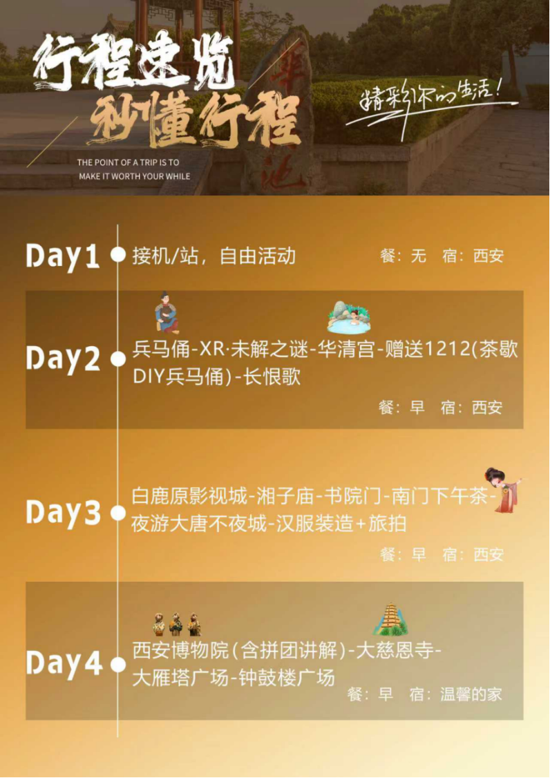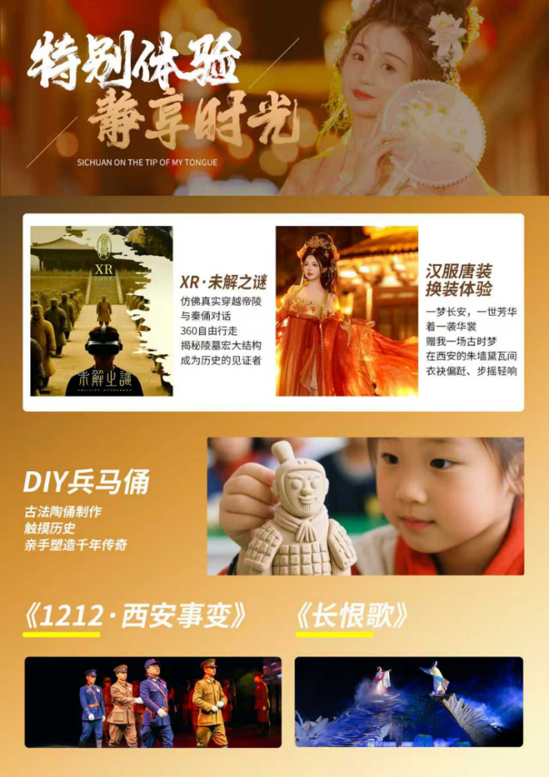 体验汉服装造+旅拍汉服妆造、体验XR未解之谜、品尝兵马俑步行街茶歇,