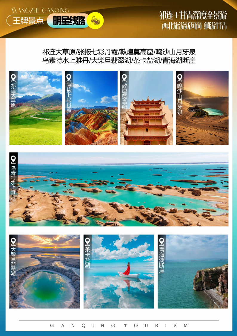 1、 门票:张掖七彩丹霞、 鸣沙山月牙泉、莫高窟 B 类应急票、大柴旦翡翠湖、水上雅丹、茶卡盐湖、等景区的首道门票,所有景区区间车均需自理 ;