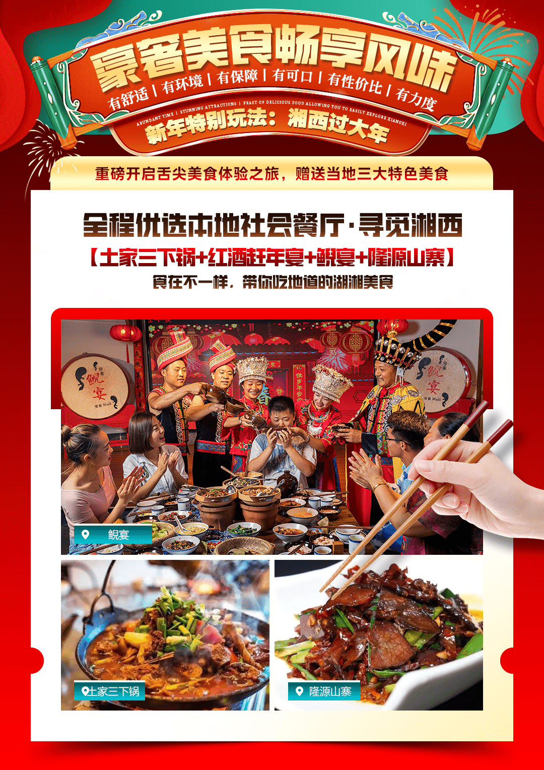 晚上赠送观赏游览:西顶级非物质文化演艺经典——【魅力湘西】VIP座(已含门票):由黄永玉题名,宋祖英、张也、陈思思三位湘籍歌唱家演唱主题歌的大型民俗晚会,总导演冯小刚、音乐总监刘欢、音乐制作捞仔,其原创节目《追爱》荣登2012央视龙年春晚,千年神秘一台戏,揭开湘西神秘的面纱,湘西奇人,湘西狂人,上刀山,下火海零距离与您接触,让您在惊奇、湘西不再神秘!让我们一起穿越时间,探寻湘西故事(魅力湘西VIP已含,因场次原因有权调整千古情VIP,无退费请谅解)