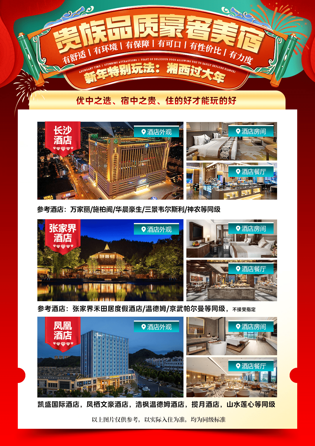 张家界:张家界禾田居度假酒店/京武帕尔曼/纳百利酒店/温德姆,不接受指定)
