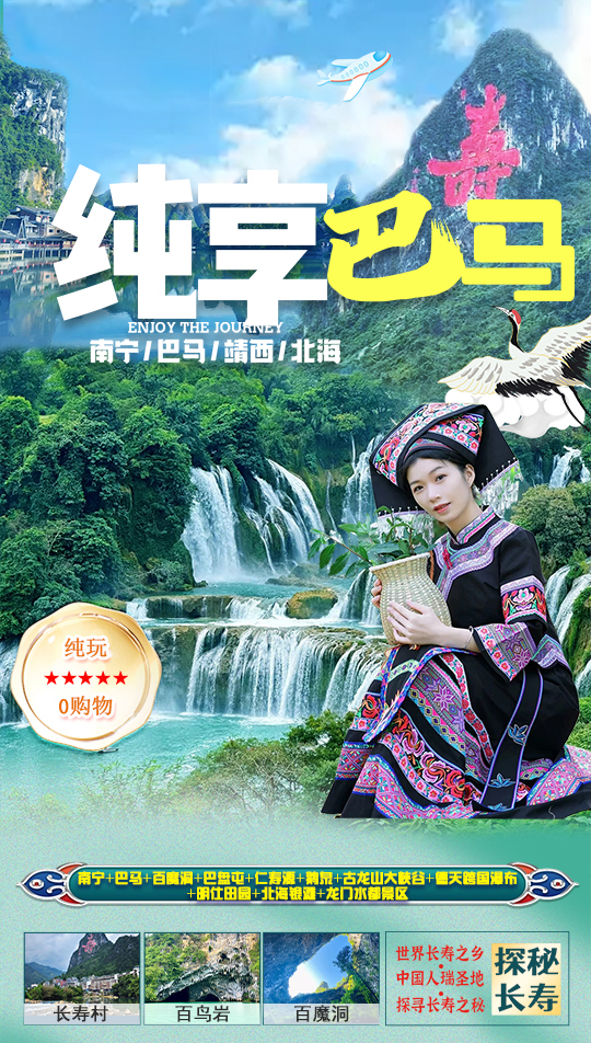 D2 | 南宁Ø巴马Ø百魔洞Ø巴盘屯Ø(自费仁寿源) | √ | √ | × | 巴马/百色/田阳 |