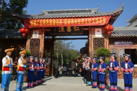 自费:前往【仁寿源】仁寿源景区是清光绪皇帝钦命广西提督学院赠送“惟仁者寿”寿匾给寿民邓诚才老人的故居,是巴马长寿文化的发源地,是巴马唯一人的一个人文景区。景区占地五十亩,出故居三进院外,园内设有特色食品作坊、游乐场、养生餐馆、民俗歌舞表演等休闲娱乐设施。是集巴马长寿文化、养生文化、孝道文化、饮食文化于一体的旅游度假景区。结合巴马长寿现象背景下的长寿人文资料,打造成地方特色浓厚的长寿文化旅游产品,为到巴马的游客提供一个了解巴马长寿历史、感知长寿文化、体验长寿氛围、探寻长寿奥秘、参与祈寿民俗表演的一个平台; 景区位于巴马瑶族自治县那桃乡平林村敢烟屯,背靠赐福湖,距离县城10公里,从县城至景区约15分钟车程而“敢烟屯”为什么会称为“敢烟”呢?据当地老人口传,“敢烟”的“敢”字在壮语里是“山洞”的意思,“烟”字据传是因为从前后山上有个山洞,山洞里每天都会有一层烟雾飘出来,意思就是指山洞里飘出来的烟,所以当地人就把这个屯称之为“敢烟”屯,这便是“敢烟”屯的来由,也使得仁寿源景区更具有了一层神秘的色彩。 您到这不仅可以了解到巴马千年长寿文化的真谛,了解当地长寿老人的生活起居;还可以与这里的村民一起制作地道的长寿养生特色小吃,如糯米饼、豆腐花、糍粑等长寿小吃。品尝地道的的巴马养生菜肴“长桌宴”,无论您孤身一人或结伴亲朋好友来到这里都可亲身体验“长桌宴”的气氛,感受到瑶家的深厚魅力。在夜幕降临之时,走进篝火晚会现场,与当地的瑶族青年载歌载舞,忘情欢歌。观赏巴马最具特色的民俗表演,其中有上刀山、下火海、瑶族舞蹈等民俗节目