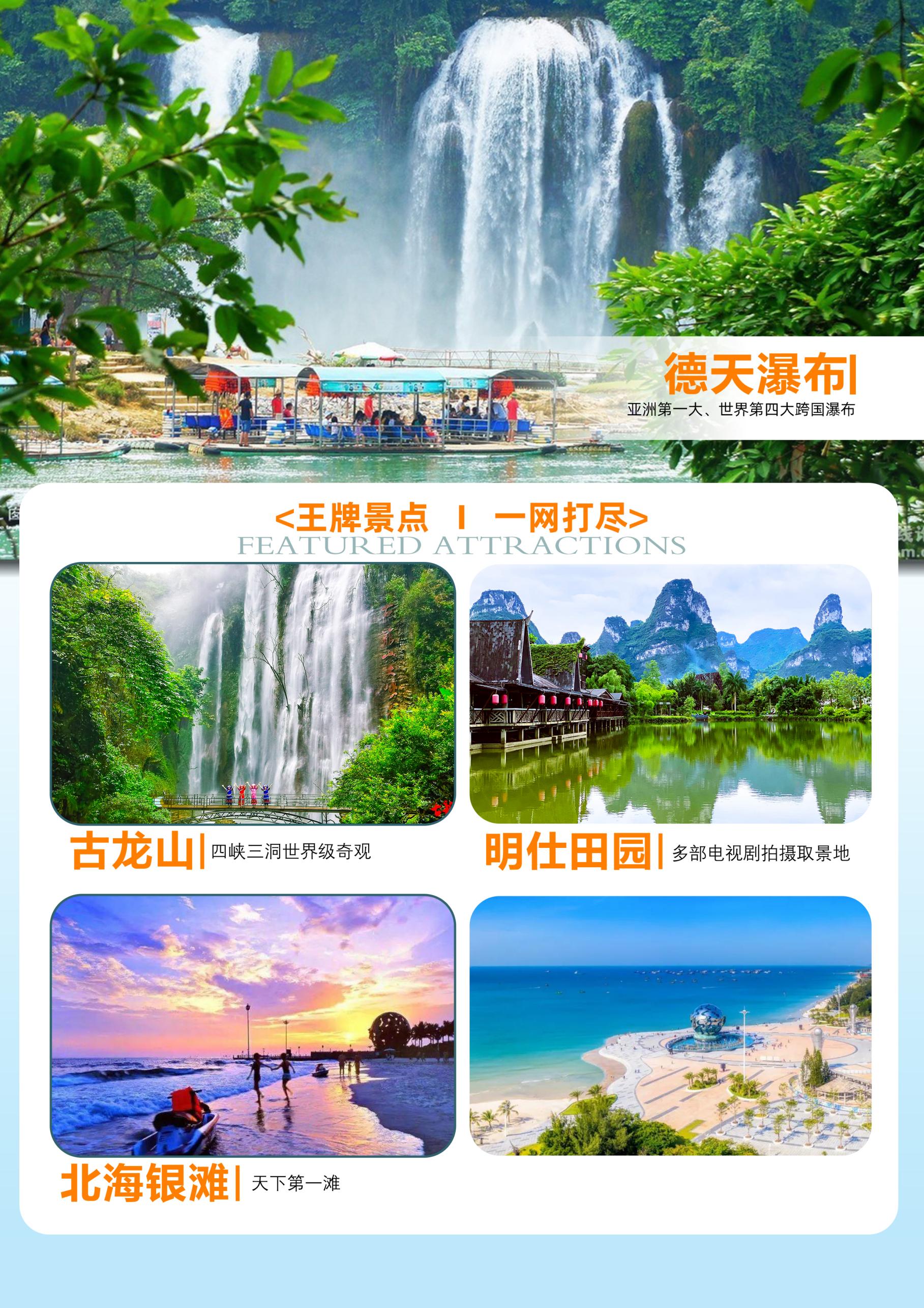 D4 | 德天跨国瀑布Ø明仕田园(自费竹排)Ø北海 | √ | √ | × | 北海/钦州 |